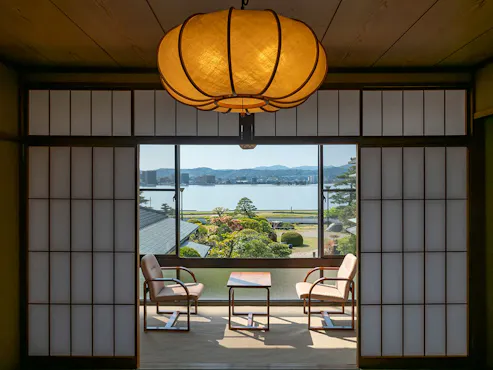 Akomodasi yang berdiri tenang di kawasan kota kastel Matsue ini menjunjung tinggi jiwa Jepang, sambil menghadirkan cita rasa dan suasana khas Matsue. Di taman bergaya tradisional yang tertata rapi, Anda dapat menikmati perubahan alam di setiap musim serta keindahan langit. Kamar spesial bernuansa kerajinan tradisional dengan pemandian terbuka berbatu ini berada paling dekat dengan Danau Shinji, dan dari Kamar Anda dapat langsung menuju taman Jepang. Nikmati Mata air panas yang juga terkenal baik untuk kecantikan kulit, baik di pemandian dalam maupun pemandian terbuka. Karena menu ditentukan setelah melihat bahan terbaik hari itu, Anda dapat menyantap hidangan istimewa racikan kepala koki berpengalaman.