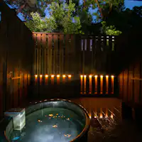 Akomodasi di pusat kota Karatsu yang bersejarah ini dekat dengan tempat wisata dan dilengkapi dengan dua Mata air panas alami serta pemandian terbuka dari kayu hinoki. Dalam suasana tenang yang merupakan hasil renovasi dari rumah seorang pemilik tambang batubara era Meiji, kami menyambut Anda dengan ikan segar dari Genkai dan sayuran musiman. Kamar tamu dengan pemandian terbuka dari keramik, yang dibuka kembali pada tahun pertama era Reiwa, adalah satu-satunya di Karatsu, dengan pemandangan taman Jepang yang indah di luar jendela. Selain itu, Akomodasi ini berada dalam jarak berjalan kaki dari Kastil Karatsu, sehingga sangat nyaman untuk wisata. Kami juga menyajikan hidangan kaiseki musiman, memungkinkan Anda menikmati kekayaan musiman Karatsu sepenuhnya.