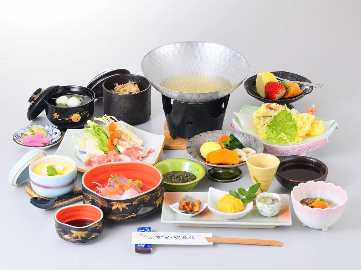Mata air panas Miyata ditemukan pada akhir zaman Edo, tahun Genji pertama (1864), dan telah menjadi tempat pemandian yang tenang di sepanjang sungai Miyata selama sekitar 150 tahun. Dengan aliran air yang melimpah, air yang licin dan lembut ini membungkus kulit dengan lembut, sehingga disebut sebagai "air kecantikan kulit". Selain itu, sesuai dengan namanya, mata air ini memiliki efek luar biasa untuk kecantikan kulit, kaya akan asam metasilikat yang efektif untuk keratinisasi kulit dan pelembapan, serta memiliki pH tinggi yang sangat baik untuk regenerasi kulit. Pada tahun 2023, dalam Pemilihan Mata Air Panas, mata air ini meraih peringkat pertama di Seluruh negara dalam kategori "kulit lembut". Untuk hidangan, kami menyajikan hasil laut dari Laut Jepang, hasil bumi seperti sayuran dan tanaman liar yang dipanen secara lokal, serta sayuran yang kami tanam sendiri meskipun dalam jumlah kecil. Kami menantikan kedatangan Anda dengan hidangan yang disiapkan dengan sepenuh hati.