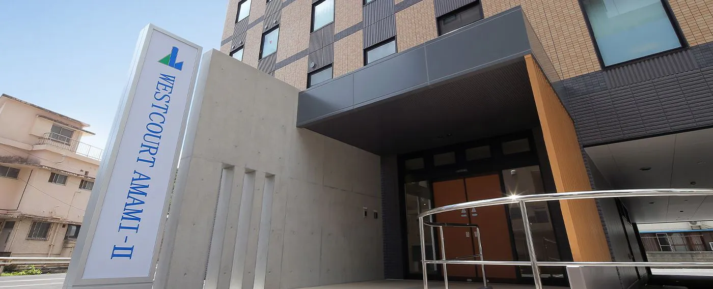 Hotel yang dibuka pada Mei 2018 ini adalah hotel bebas rokok di semua kamar. Dilengkapi dengan pemandian umum & sauna, tersedia "sauna inframerah jauh" di pemandian pria dan "sauna uap" di pemandian wanita. Sarapan disajikan dalam bentuk prasmanan dari pukul 6:30 hingga 9:30, dengan roti yang dipanggang di dalam toko dan hidangan khas Amami Oshima "keihan" yang dapat dinikmati. West Court Amami adalah hotel yang menawarkan kenangan tak terlupakan bagi semua tamu yang berkunjung sebagai basis ideal untuk pariwisata dan bisnis. Hotel ini menghargai konsep "WA", yang menekankan pertemuan dan interaksi antar manusia, menciptakan suasana yang harmonis. Di sini, kejadian sepele selama perjalanan menjadi kenangan indah yang membekas di hati, dan para tamu terhubung sebagai "WA", yaitu harmoni, lingkaran, dan lingkungan, dengan harapan bahwa ikatan ini akan menyebar dari Amami. West Court Hotel bertujuan untuk menyediakan ruang yang nyaman dan menenangkan, menciptakan lingkungan yang ideal baik untuk pelancong bisnis maupun wisatawan. Aksesnya juga mudah, hanya 50 menit dengan bus bandara dari Bandara Amami, 5 menit dengan taksi dari Pelabuhan Naze, atau 15 menit berjalan kaki, menawarkan lokasi yang sangat baik. Selain itu, hotel ini dilengkapi dengan tempat parkir yang dapat menampung 100 mobil, sehingga akses dengan mobil tidak perlu dikhawatirkan. Selain itu, West Court Amami menghargai lingkungan kerja yang membuat hati berdebar dengan satu kata "terima kasih", dan bertujuan untuk menjadi tempat yang hangat baik bagi tamu maupun staf dengan membantu pertemuan dan interaksi antar manusia. Hotel ini menyediakan layanan dengan sepenuh hati agar setiap perjalanan tamu menjadi istimewa.