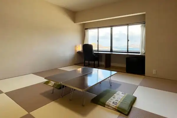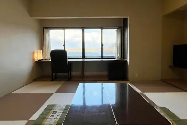 Akomodasi yang menawarkan masakan dengan bahan segar dari Laut Jepang dan kamar dengan pemandangan laut yang indah.