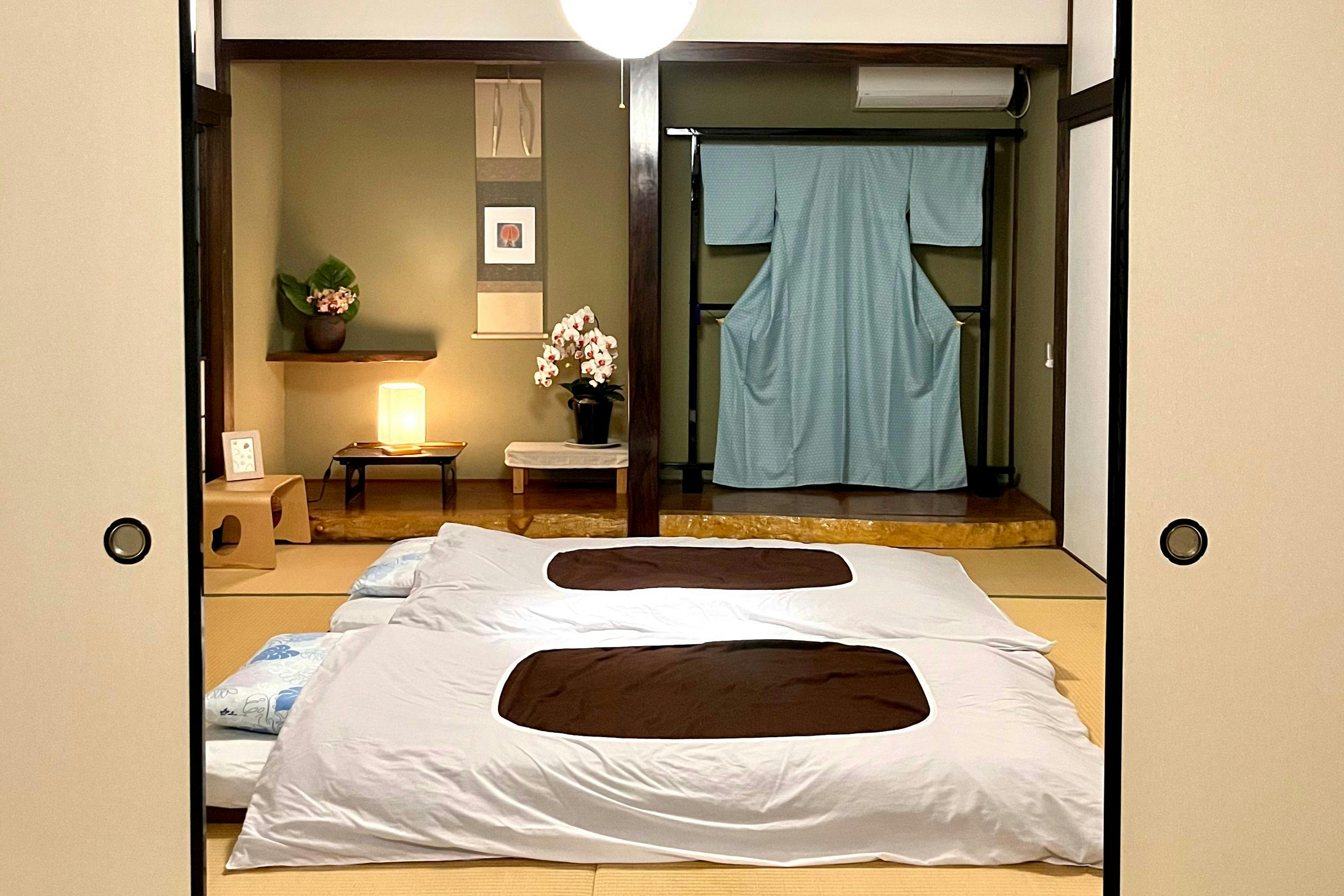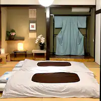 Kamar bergaya Jepang yang luas berukuran 16 tatami adalah ruang istimewa yang hanya bisa Anda temukan di Akomodasi ini. Bersantai bersama di satu ruangan dan menggelar futon berdampingan akan membuat percakapan serta kebersamaan terasa semakin dekat secara alami. Futon selalu dikeringkan dan disterilkan dengan saksama setiap kali digunakan, sehingga tetap bersih, lembut, dan nyaman. Nikmati waktu untuk menyegarkan tubuh dan pikiran, dikelilingi kehangatan tatami dan kayu.