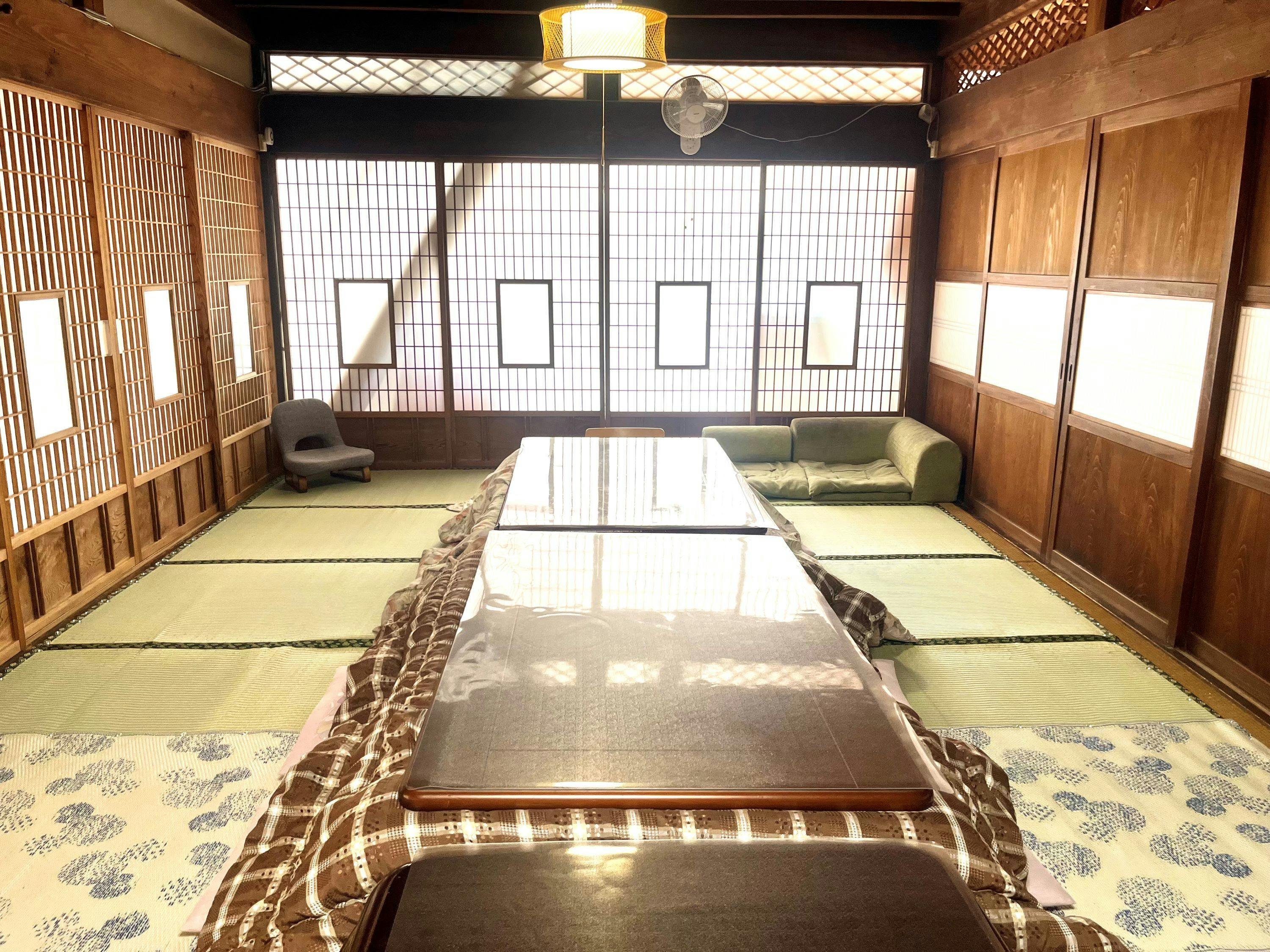 Sebagai Akomodasi sewaan privat yang nyaman untuk rombongan besar, kami menyediakan dapur dan ruang makan yang lengkap untuk menikmati hidangan hot pot. Hot pot yang dimasak bersama sambil mengelilingi bahan-bahan akan menciptakan momen makan yang istimewa dan membuat percakapan mengalir dengan alami. Mengapa tidak sejenak lepas dari rutinitas pekerjaan rumah dan menikmati memasak bersama? Tidak hanya di musim dingin, berkat fasilitas AC Anda dapat menikmati hot pot kapan pun sepanjang tahun.