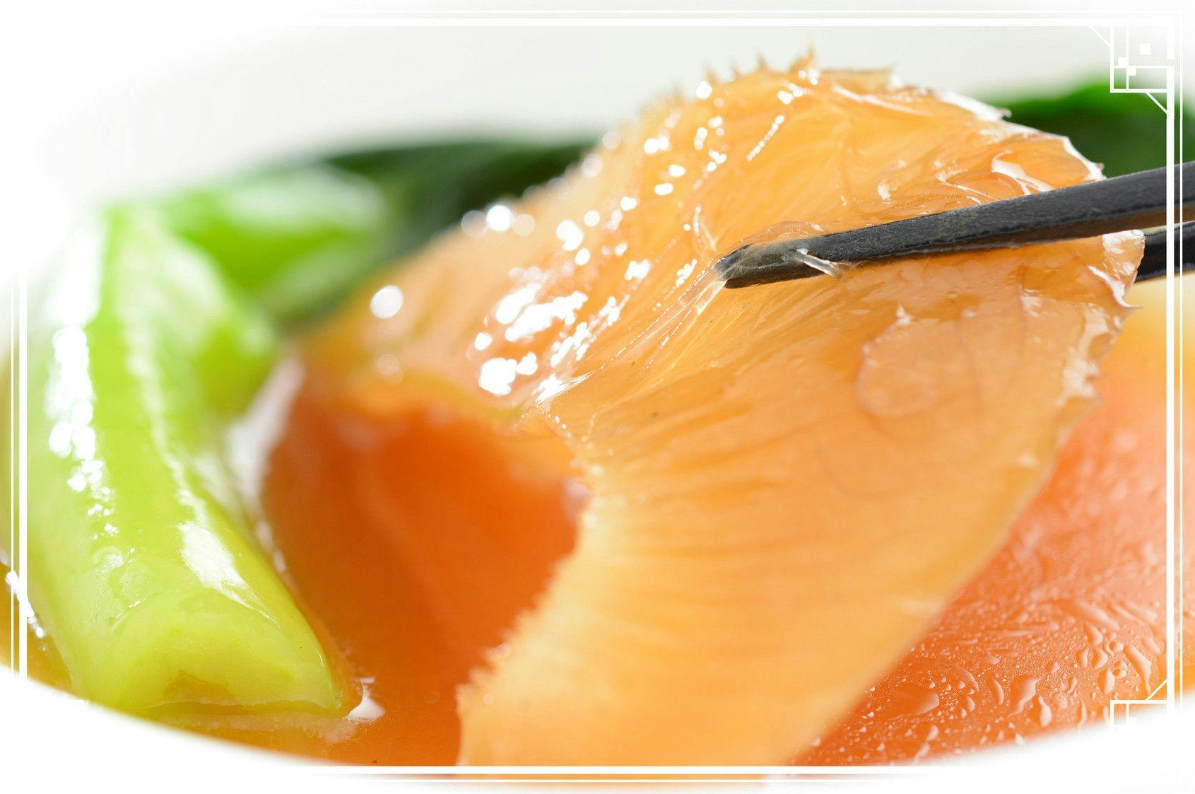 Kami mempersiapkan selama 3 hari. Dengan persiapan yang hati-hati, kami dapat menyajikan sirip hiu tanpa bau amis. Setelah itu, kami merebusnya perlahan selama satu hari penuh dengan saus rahasia. Nikmati sirip hiu rebus yang kaya rasa dan lezat yang hanya tersedia di tempat kami.