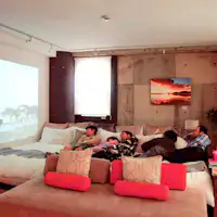 Proyektor, Nintendo Switch, permainan kartu, permainan papan, buku, dan lain-lain.
