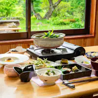 Kami menyajikan soba buatan tangan yang dibuat dengan air alami dari Gunung Asama, sayuran segar yang dipanen pagi hari dari petani mitra, serta berbagai hidangan buatan sendiri menggunakan bahan musiman seperti tanaman liar dan jamur lokal. Setiap hidangan disiapkan dengan penuh perhatian, menghadirkan cita rasa sederhana yang mengingatkan pada kenangan lama dan memberikan kehangatan di hati. Makanan di penginapan ini memberikan pengalaman seolah-olah Anda menikmati kekayaan alam pegunungan itu sendiri. Nikmati kekayaan tanah yang hidup selaras dengan alam melalui semua indra Anda.