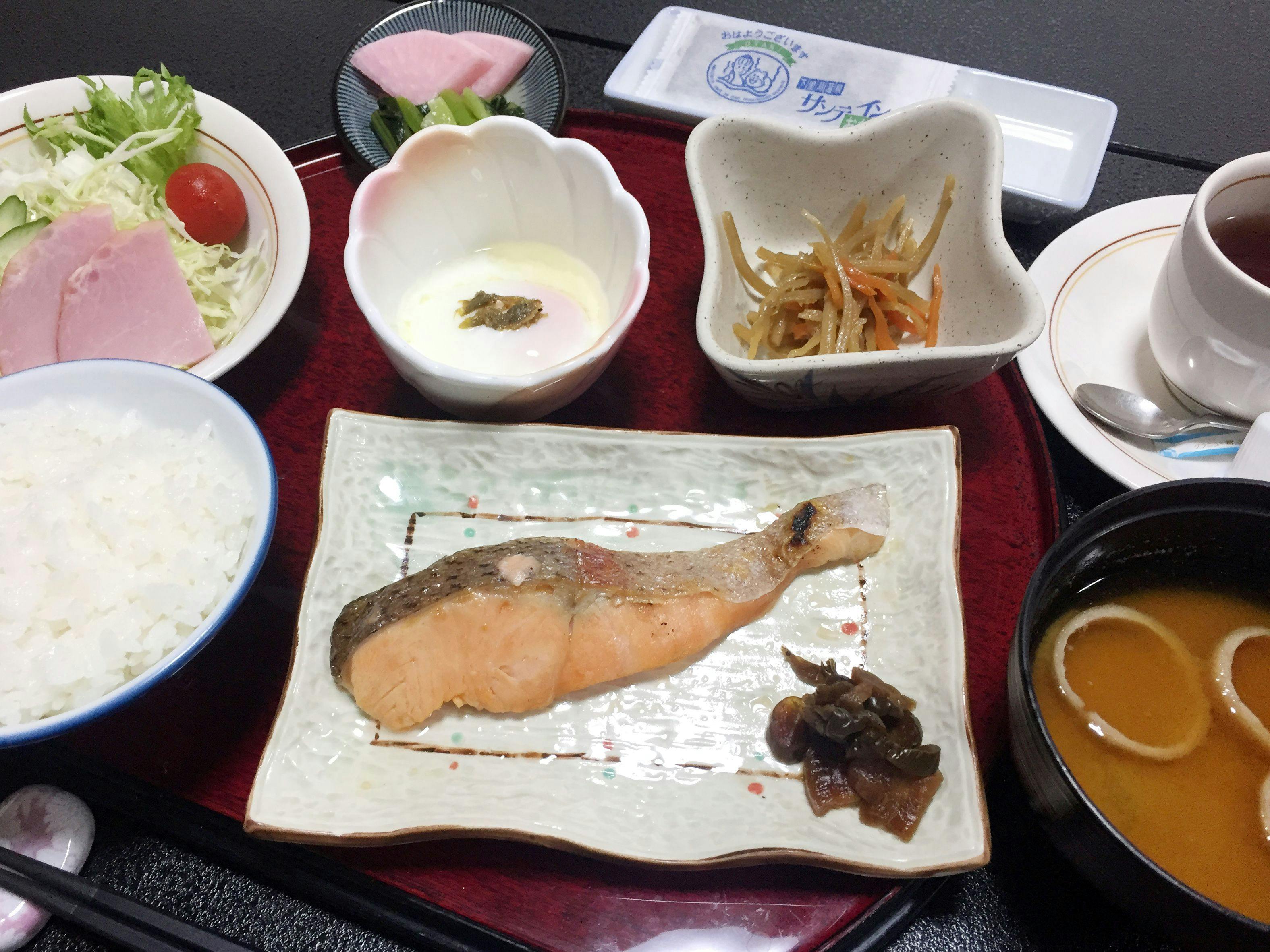 | Sarapan | Menyediakan set menu Jepang (teishoku) gaya washoku. |