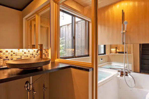 Berjalan lurus sekitar 11 menit dari Stasiun "Gion Shijo" di Jalur Keihan Main Line melalui Shijo-dori, Anda akan menemukan sebuah machiya yang berdiri di dekat Kuil Yasaka, salah satu tempat wisata terkenal di Kyoto. Selama perjalanan, Anda dapat menikmati toko-toko yang berjajar di kiri dan kanan jalan serta keindahan Hanamikoji yang elegan sebelum tiba di machiya ini. Lokasinya sangat strategis sebagai basis wisata Kyoto, dekat dengan area Gion, Kawaramachi, dan Kuil Kodaiji, serta hanya sedikit lebih jauh ke Kuil Kiyomizu. Selain itu, jika menggunakan kedua bangunan yang terhubung, akomodasi ini dapat menampung hingga 8 orang dalam satu grup. Di lantai pertama, tersedia dapur kecil yang memungkinkan Anda untuk memasak makanan ringan. Nikmati perjalanan Anda di Kyoto dengan kembali lebih awal ke akomodasi untuk bersantai di kamar atau menjelajahi Kyoto di malam hari!