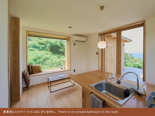 Filosofi ist adalah "Bersama dengan alam". Pada dasarnya, alam bukanlah sesuatu yang terpisah atau jauh dari manusia, melainkan sesuatu yang secara alami ada di sekitar kita. Menyadari keberadaan diri bersama alam, menghargai alam tersebut, dan merasakan kenyamanan yang diberikannya. Itulah yang menjadi inti dari pemikiran ist. ist – Sado menawarkan pesona alam yang luar biasa, dengan garis pantai dan pegunungan yang menciptakan lanskap unik, pohon-pohon tinggi yang menjulang, bintang-bintang yang menghiasi langit malam, serta lokasi di semenanjung yang dikelilingi Laut Jepang yang luas di depan dan hijau pegunungan di belakang. Kami telah membangun tiga rumah kompak yang disebut "Hut" dan sebuah "Lounge" di mana pengunjung dapat bersantai sambil menikmati kopi atau bir. Semua ini dirancang agar para pengunjung dapat merasakan kedekatan yang mendalam dengan alam sekitar. Dengan mendengarkan dengan tenang dan mengamati lingkungan sekitar dengan seksama, Anda dapat merasakan keberadaan berbagai makhluk hidup dan tumbuhan.