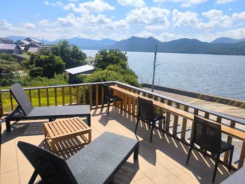 Dari jendela besar, Anda dapat menikmati pemandangan teluk yang tenang, dengan sinar lembut pagi hari yang masuk menciptakan suasana nyaman. Hanya beberapa menit berkendara, terdapat "Pantai Kotohiki" di mana Anda dapat menikmati berenang atau berjalan-jalan santai selama musim panas. Lokasi ini sempurna untuk wisata maupun menghabiskan waktu dengan santai. Cocok untuk perjalanan bersama keluarga dan teman, atau bahkan untuk Anda yang ingin menyegarkan diri sendiri. Nikmati waktu santai bersama keindahan alam Kumihama.
