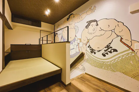 Akomodasi “OYADO” bertema Kabuki, Fuji, dan Sumo menawarkan kamar bergaya bisnis dengan konsep Jepang modern berlantai tatami yang unik, dapat menampung hingga 3 tamu. Nikmati pengalaman menginap di Akomodasi yang berbeda! ・Check-in 15:00–20:00 ・Check-out 10:00 ・Luas kamar|18,61 m² ・Kapasitas|3 dewasa (hingga 2 anak Anak berbagi tempat tidur) ・Parkir|Tidak tersedia