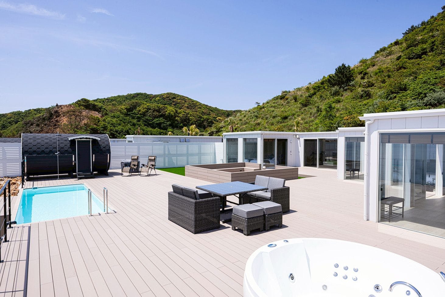 Berikut adalah fasilitas dan fitur yang tersedia. Sauna・Kolam renang luar ruangan・Hewan peliharaan diperbolehkan・Layanan antar-jemput (gratis)