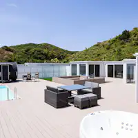 Pelabuhan Oshima dapat dicapai sekitar 5 menit dengan bus shuttle gratis. Nikmati waktu santai Anda dikelilingi oleh alam.