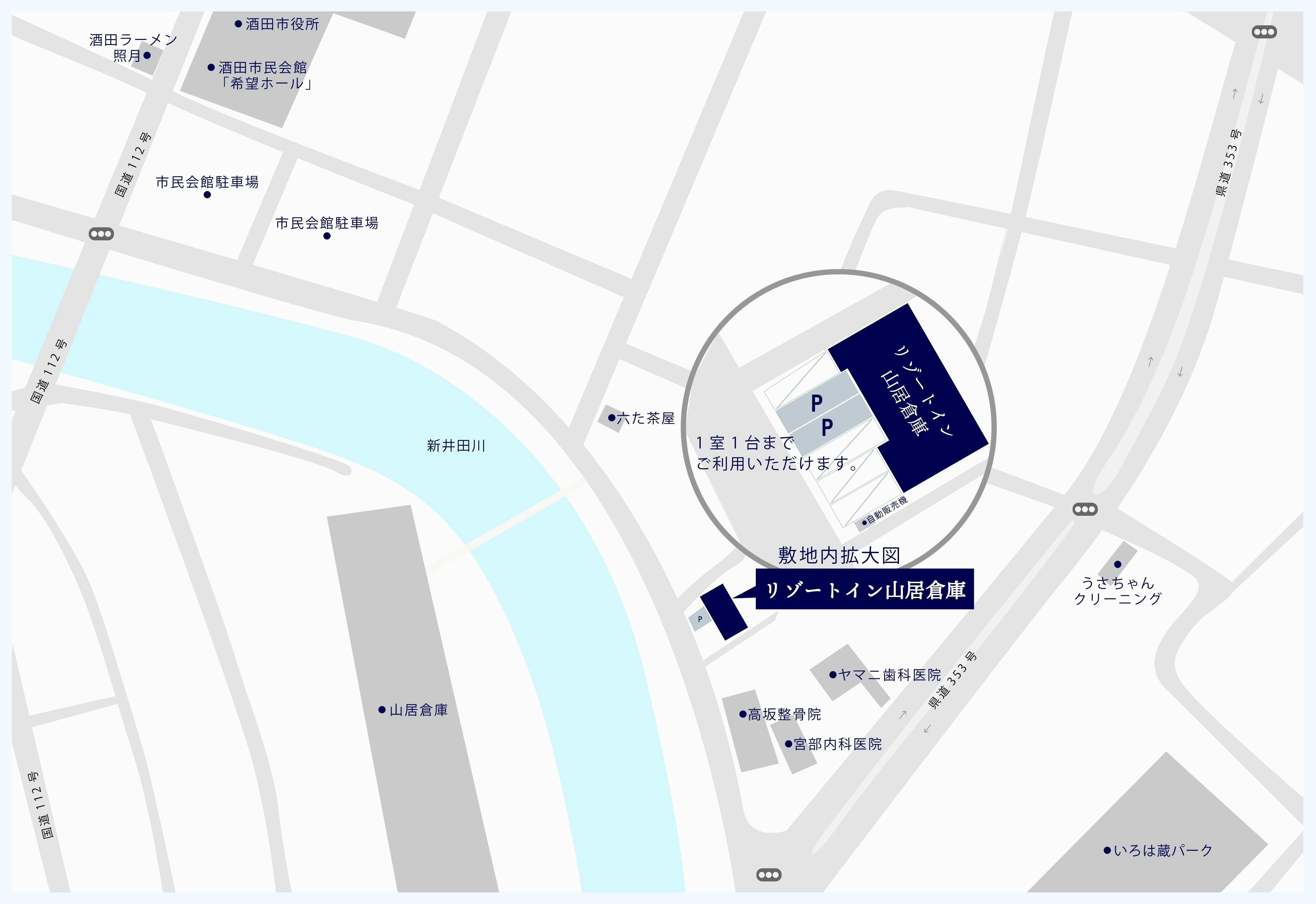 Hanya 4 menit berjalan kaki ke Gudang Sankyo dan 5 menit berjalan kaki ke Balai Kota Sakata. Tempat yang ideal untuk bisnis maupun wisata sebagai "pusat perjalanan" di Sakata.