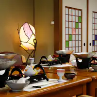 | Sarapan | Kami menyediakan beragam bahan makanan yang ramah bagi tubuh. Di antaranya, bubur Mata air panas, chirimen jako rebus gaya Arima buatan tangan kepala koki, serta telur Mata air panas yang menjadi menu klasik sangat direkomendasikan. |