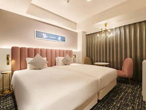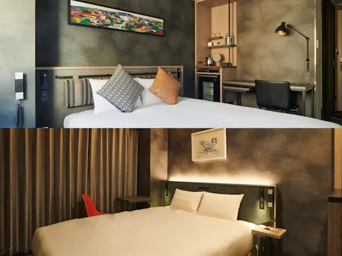 4층부터 13층은 홋카이도의 매력을 이미지화한 예술 작품을 갖춘 "아트룸"입니다. 4~8층은 2022년 4월, 9~13층은 2020년 7월에 리뉴얼되었습니다. 홋카이도에서 활약하는 아트 작가의 작품을 벽면에 설치하여, 고객님께서 예술과 문화를 접하며 편안히 휴식을 취할 수 있는 공간을 제공합니다. 작품은 홋카이도의 히구마나 키타키츠네 등을 모티브로 한 것과, 아이누 문양을 홋카이도산 너도밤나무 보드에 새긴 부조 등, 홋카이도와 관련된 테마 설정에 따라 각 작가가 당 호텔의 오리지널로 제작한 신작 아트입니다. 아크릴화 등의 액자 작품 전시 외에도, 이번에 새롭게 4팀의 작가가 제작한 신작 디자인을 과감히 벽지에 채용한 "이매진룸"이 탄생했습니다. 3가지 컬러 스타일인, 비일상을 느낄 수 있는 "HIP", 도시적이고 세련된 "URBAN", 나무의 따뜻함이 느껴지는 "NATURAL"을 기본으로 전개하며, 체류 장면에 맞춰 선택하실 수 있습니다.
