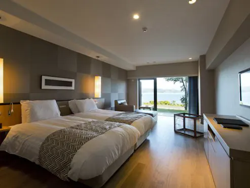 164개의 객실은 전 객실 올 레이크뷰입니다. 스탠다드 트윈과 싱글, 반려동물 동반 가능 층을 갖춘 캐주얼하게 이용할 수 있는 "스파 리조트관"과 전망 욕조가 딸린 객실 및 특별실 등 프리미엄한 숙박이 보장된 "노노카제 클럽". 여행 스타일에 맞춰 다양한 객실을 선택하실 수 있습니다.
