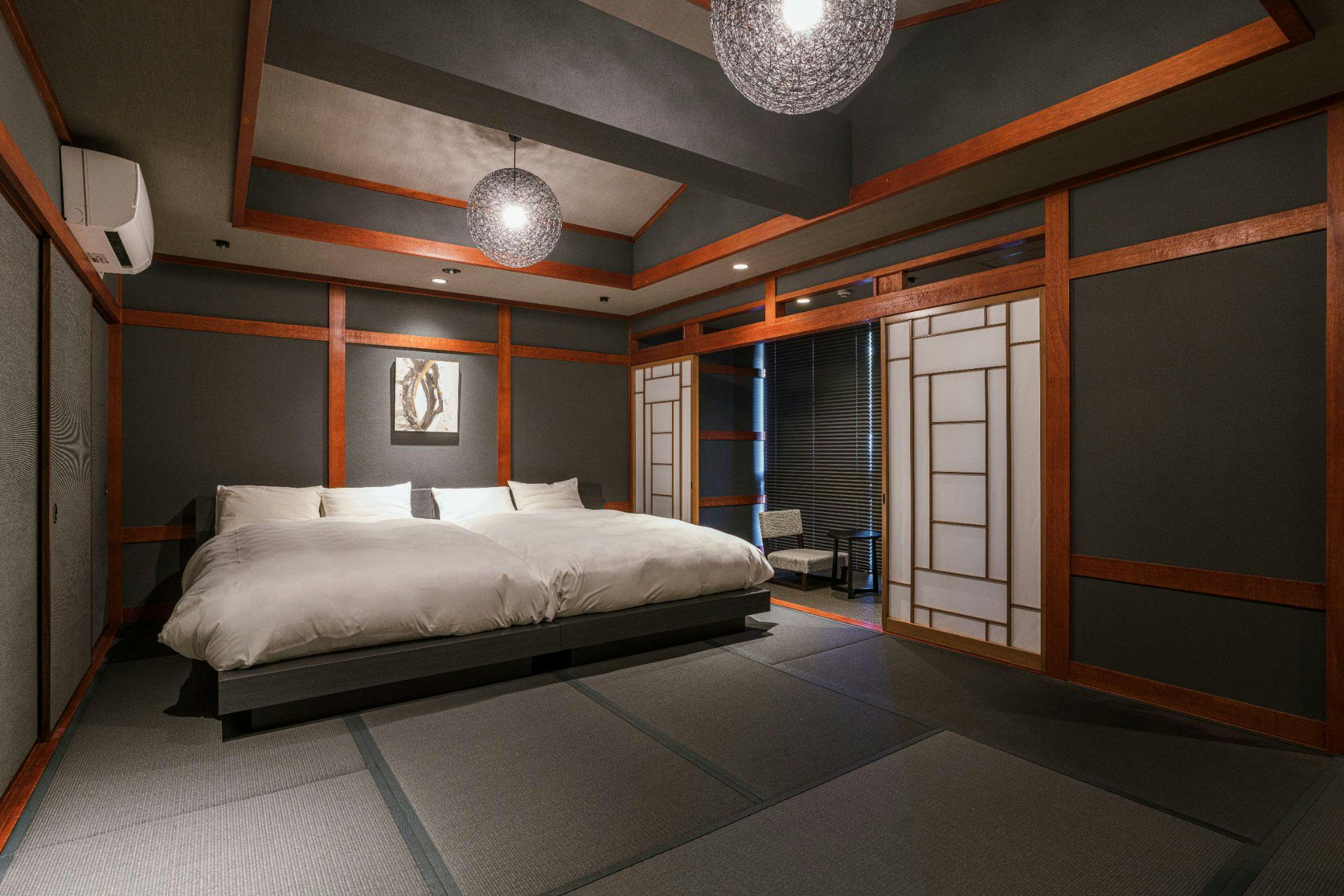 심산에서는 수묵화, 다치쿠이 도자기, 밀짚 공예 등 일본 전통 예술이 관내부터 객실까지 풍성하게 배치되어 있어, 숙박 자체가 아름다움을 만끽하는 시간으로 변합니다. 라운지에는 세계 최대급을 자랑하는 압도적인 밀짚 공예가 전시되어 있으며, 섬세한 광채가 공간에 품격 있는 화려함을 더합니다. 객실에도 엄선된 예술 작품이 배치되어 있어 조용히 마음을 채우는 일본의 미를 일상의 연장이 아닌 특별한 경험으로 승화시킵니다.