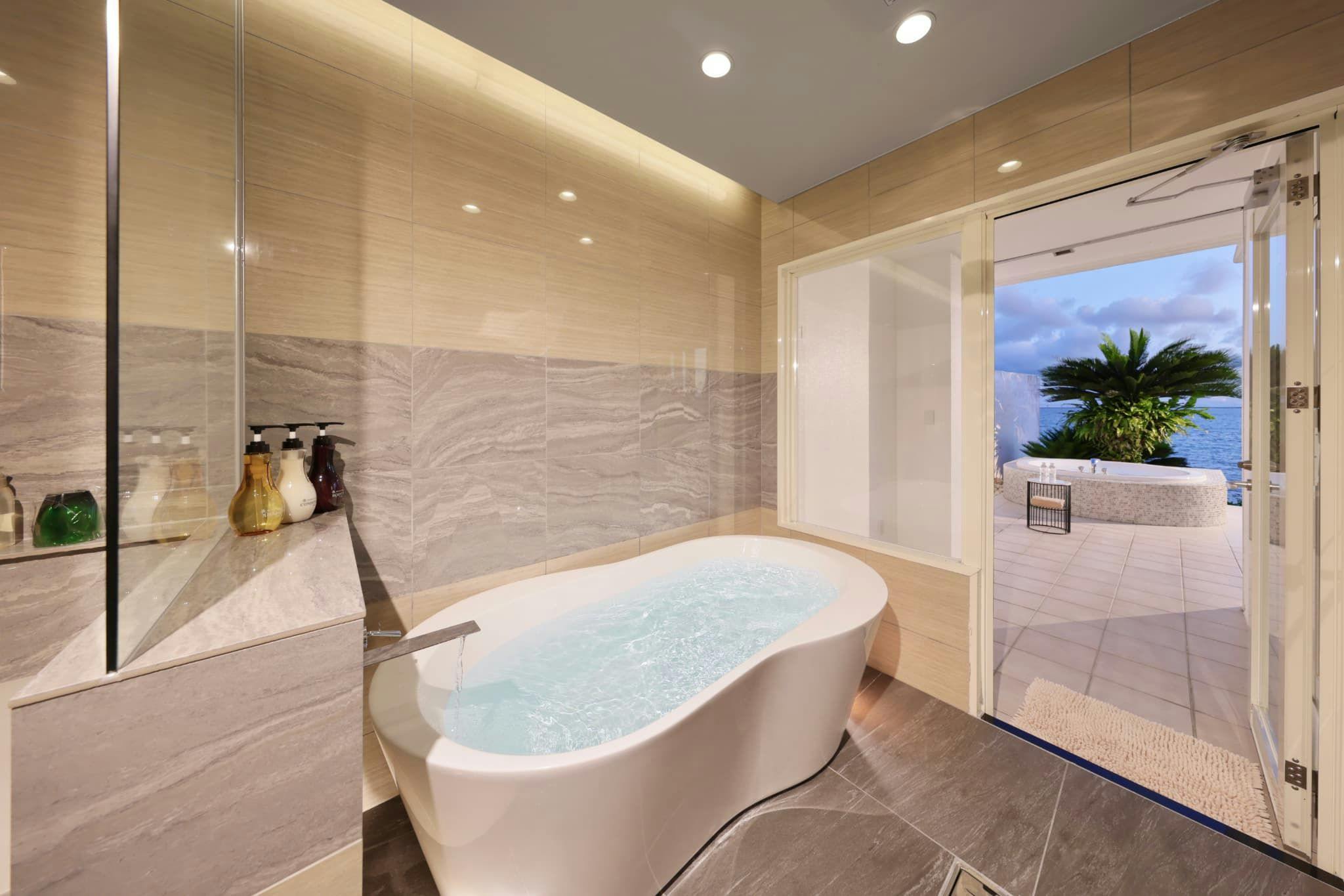 I’ve visited Miyakojima several times, but this may be the only Facility in this price range that offers so much.With a jacuzzi bath, pool, sauna, and a private beach—more than you could ask for—andthis time the weather was great and we even got to see the sunset, so we were very satisfied.As for the sauna, there’s no lighting fixture so it’s pitch-dark at night, but since it has a window,it didn’t bother us.