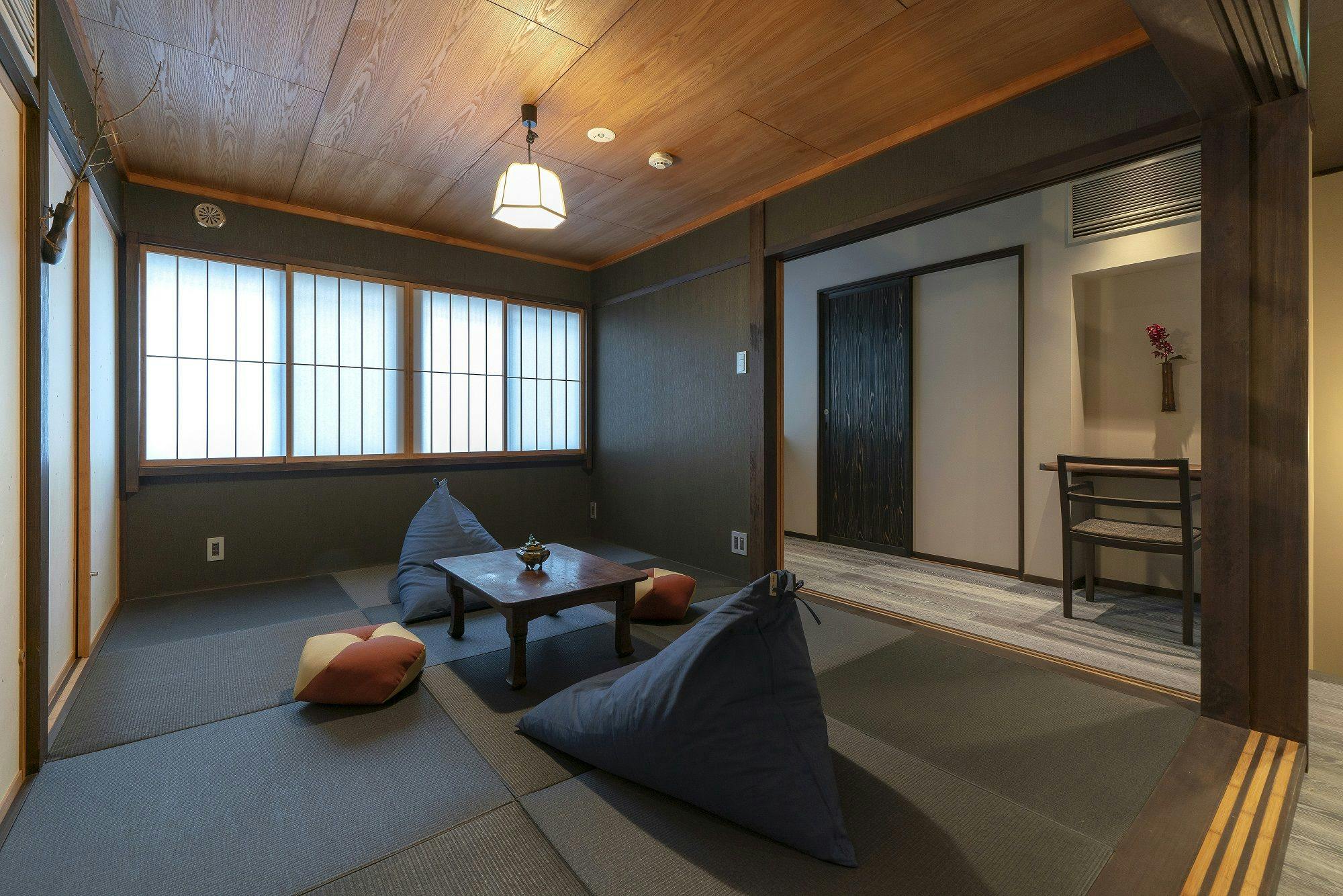 가나자와 특유의 검은 회반죽과 격자로 아름다움을 발산하는 숙소. 일본 고유의 생활에 밀접한 '남색'을 산재시킨 숙소입니다. 곳곳에는 가나자와의 희소 전통 공예인 '가가누이'가 장식되어 있으며, 금실, 은실, 견사가 돋보이는 자수는 화려함과 생동감을 연출합니다. 전통 문화와 디자인에 흠뻑 빠져 여유로운 시간의 흐름을 느껴보세요.