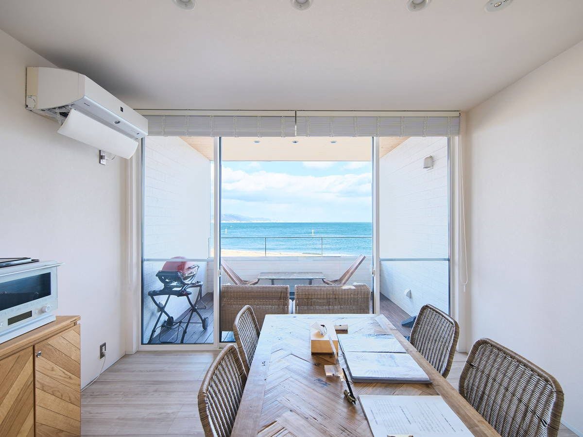 바다를 마주한 도로변에 위치한 렌탈 별장. 큰 창문을 통해 아와지섬의 바다를 즐길 수 있습니다.