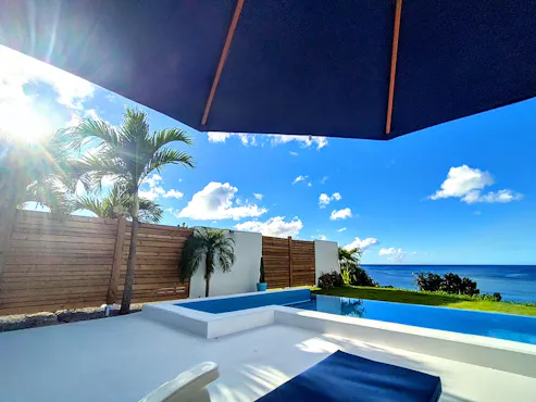새파란 하늘, 새파란 수평선과 이어지는 새파란 풀장에 하얀 구름과 짙은 녹색의 야자수가 비칩니다. 완전 프라이빗한 인피니티 풀은 저희 빌라의 상징적인 존재입니다. 풀장의 수심은 70cm에서 가장 깊은 곳은 150cm로, 가족 모두가 즐기실 수 있습니다. 풀장은 단차와 파라솔이 있어 유아를 동반한 가족도 안심하고 이용하실 수 있습니다. 이시가키섬에서 코발트 블루의 바다를 바라볼 수 있는 인피니티 풀이 있는 곳은 오션뷰 이시가키뿐입니다. 아열대 파라다이스를 만끽해 보세요.