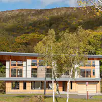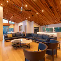 로안(Ro-An)은 여러 세대의 가족이 모여 유대를 더욱 깊게 하기 위해 설계되었습니다. 로안은 "난로의 은신처"를 의미하며, 실제로 큰 가스 난로 앞에서 가족이나 친구들과 함께 편안히 쉴 수 있는 최적의 장소입니다. 고품질의 자연 소재를 엄선하여 북미산 레드 시더와 더글라스 퍼를 사용하였습니다. 이를 통해 따뜻한 색감이 알프스 분위기를 한층 더 돋보이게 하며, 독특한 지붕 디자인이 건물에 독창성을 더해줍니다. 마음껏 휴식을 취하고 싶은 게스트에게 로안은 이상적인 단독 주택입니다. 나무로 된 아치를 배치하여 높은 천장을 연출하며, 다른 곳에서는 느낄 수 없는 개방감을 제공합니다. 넓은 거실과 다이닝 공간에서 호화로운 시간을 만끽해 보세요.