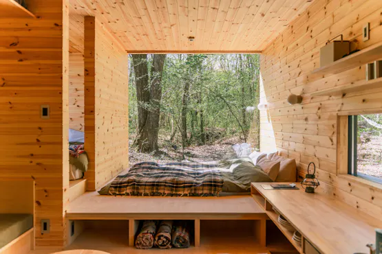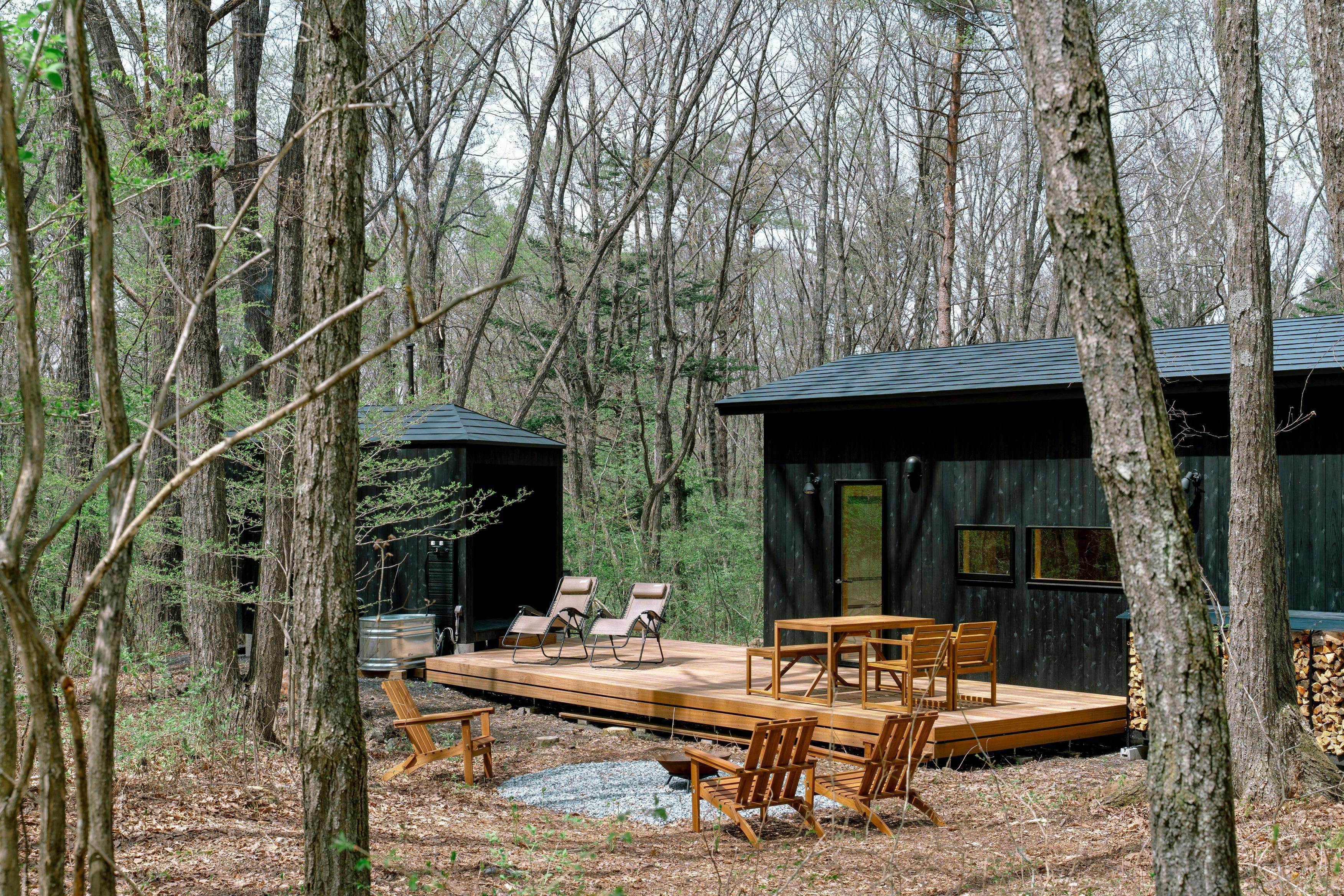 큰 창문으로 사계절의 숲을 바라보고, 장작 사우나에서 몸과 마음을 정리하며, 모닥불을 둘러싸고 시간을 보냅니다. 자연과 하나가 되면서도 실내에서는 편안하게 머물 수 있는 새로운 아웃도어 경험을 제공합니다. 누구에게도 구속받지 않는 당신만의 시간이 여기에 있습니다. 【숲을 온전히 즐기는 장작 사우나】 부지 내에는 에스토니아산 HUUM 스토브를 갖춘 본격적인 장작 사우나를 단독으로 준비했습니다. 장작이 타는 소리, 부드러운 열기, 아사마산의 용천수를 사용한 천연수 욕조──. 오감으로 자연을 느낄 수 있는 최고의 힐링 체험이 기다리고 있습니다. 넓은 우드 데크에서 숲에 녹아드는 쿨다운도 가능합니다. 당신만의 숲에서 누구에게도 방해받지 않는 사우나 체험을 즐겨보세요. 【숙소】 자유롭게, 하지만 편안하게. 실내에는 최대 5명까지 숙박 가능하며, 텐트를 가져오시면 최대 11명까지 머물 수 있습니다. 밖에서 마음껏 놀고 밤에는 부드러운 침대에서 푹 잠들다── ‘자유’와 ‘편안함’을 동시에 누릴 수 있는 새로운 아웃도어 스테이가 여기에 있습니다. 작은 집과 무한한 숲이 함께하는 곳, 후토 타이니 기타카루이자와에서 누구에게도 구속받지 않는 당신만의 자유를 되찾으세요!