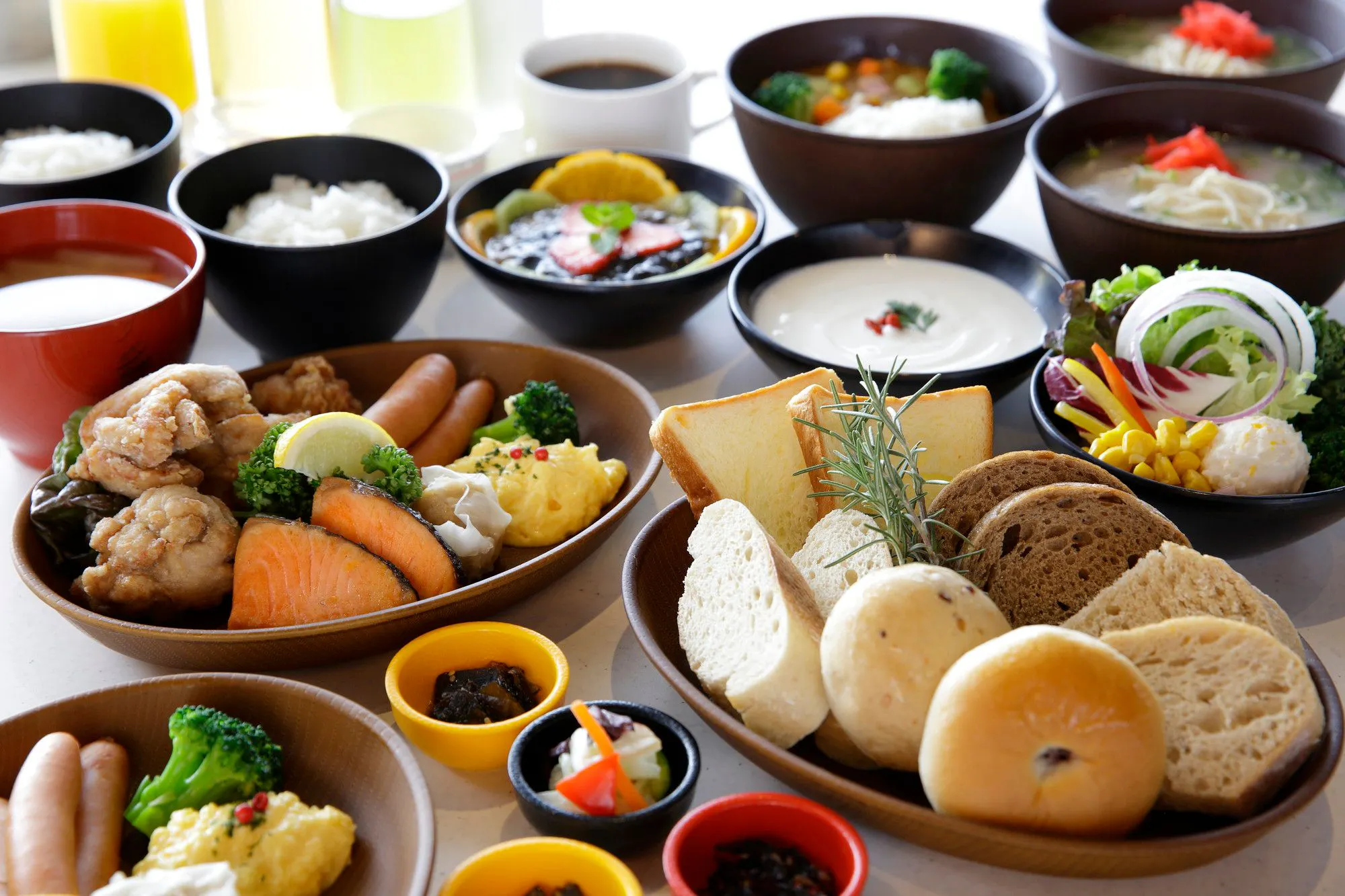 기본 밥과 빵 외에도 카레와 돈코츠 라멘도 준비했습니다! 계란, 생선, 고기 반찬에 더해 다채로운 샐러드와 미소된장국, 수프 등 아침 식사에 빠질 수 없는 메뉴를 갖추었습니다. The358 UMI의 아침 뷔페로 활기찬 아침을 시작하세요!