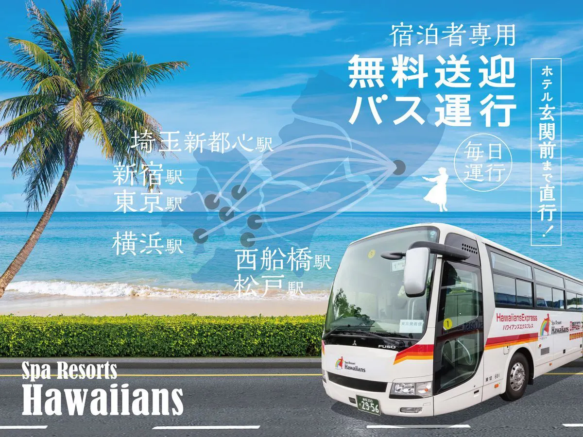 투숙객 한정으로 수도권 각지에서 하와이안즈까지 무료 셔틀 서비스를 제공합니다.
