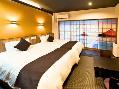 숙소는 하코네 외륜산을 바라보며 쉴 수 있는 노천탕과 마음과 몸을 리프레시할 수 있는 넓은 온천 욕장이 자랑입니다. 모든 객실에는 반노천탕이 마련되어 있어 객실에서도 편안히 휴식을 취하실 수 있습니다. 저녁 식사와 아침 식사 모두 계절의 일본식 정찬을 즐기실 수 있습니다. 또한, 노래방 룸과 오락 공간도 준비되어 있어 즐거운 시간을 보내실 수 있습니다.