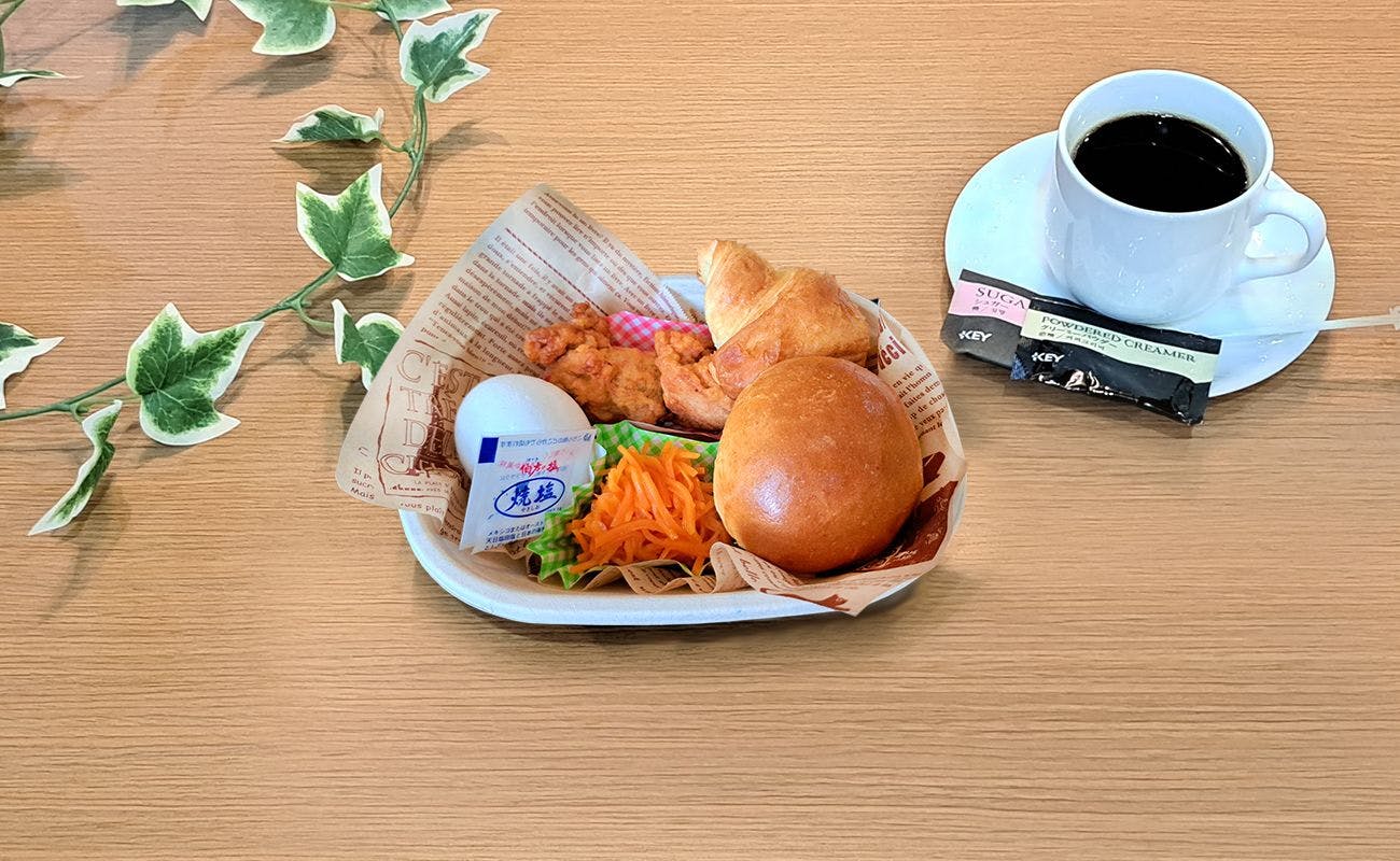| 아침 식사 | 간단 조식(모닝 BOX) ★내용: 빵 2개·반찬·삶은 달걀·잼·커피·차 *매일 메뉴가 달라 식재료가 일부 변경될 수 있습니다. ★배부 시간 a.m.6:30~a.m.9:30 *모닝 BOX는 당일 프런트에서 전달해 드립니다. *객실에서 드시기 바랍니다. ※간단 조식을 추가로 원하시는 경우 ‘숙박일 전날’까지 말씀해 주세요. |