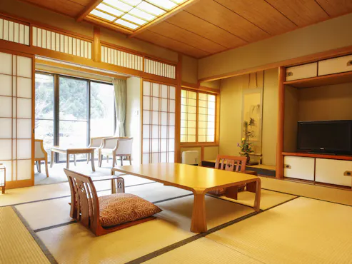 대자연에 둘러싸인 순수 일본식 숙소로, 사계절의 아름다운 풍경을 즐길 수 있습니다. 아카메 사십팔 폭포 근처에 위치하며, 넓은 부지 내에는 천연 온천이 솟아납니다. 그 온천수는 피부에 부드럽고, 미인과 건강의 온천으로 사랑받고 있습니다. 모든 객실에는 가습 공기청정기가 설치되어 있으며, 프라이버시를 중시한 숙소 건물은 가족이나 그룹에게 호평을 받고 있습니다. 지역 명소인 '이가 소고기'를 비롯한 계절 재료를 사용한 요리를 즐길 수 있습니다.