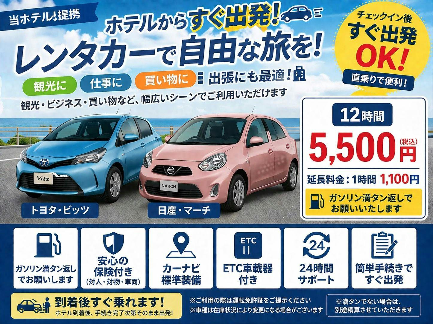 주차장이 무료로 표시된 경우에도 숙박당 800엔으로 이용 가능합니다.(사전 예약 필수)