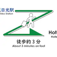 닛코역에서 도보 3~5분의 뛰어난 위치에 자리하고 있습니다. 세계유산 니샤이치지 관광에도 매우 편리합니다. 닛코IC에서 자동차로 3분, 도부닛코역에서 도보 3분, JR닛코역에서 도보 5분