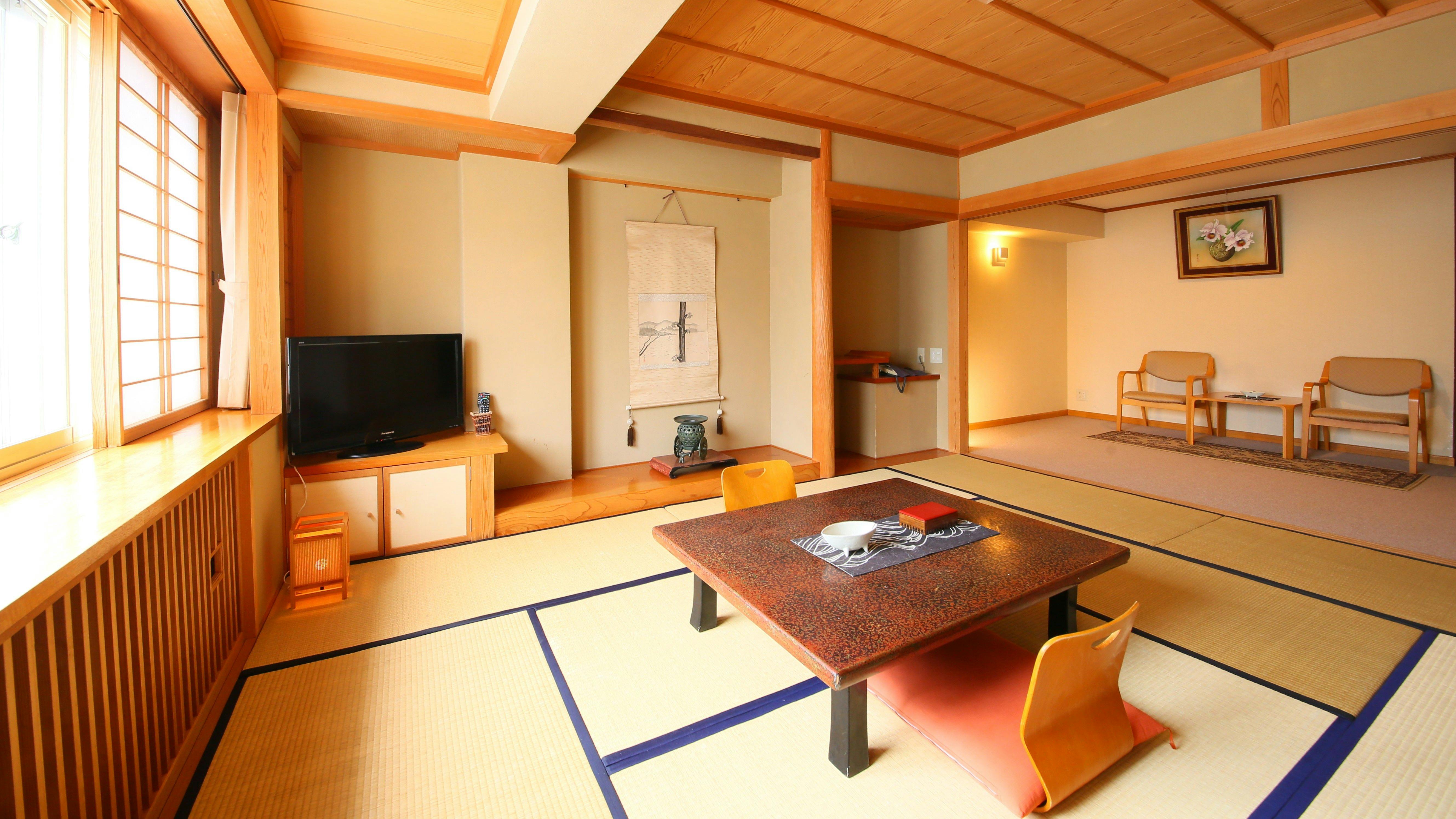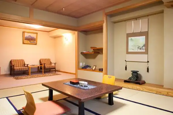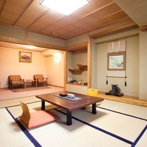 풍부한 온천수와 넓은 욕조가 자랑인 숙소에서, 개방적인 창문을 통해 시가고원의 사계절 풍경을 마음껏 즐기실 수 있습니다. 정원 2~6명의 일본식 10다다미 객실은 TV, 냉장고, 전기포트 등을 완비하고 있습니다. 요리는 지역 산채를 주재료로 하여 건강하고 누구나 맛있게 드실 수 있도록 준비됩니다. 별도 주문 요리로는 계절 산채 튀김, 소고기 스테이크, 이와나 뼈술도 즐기실 수 있습니다.