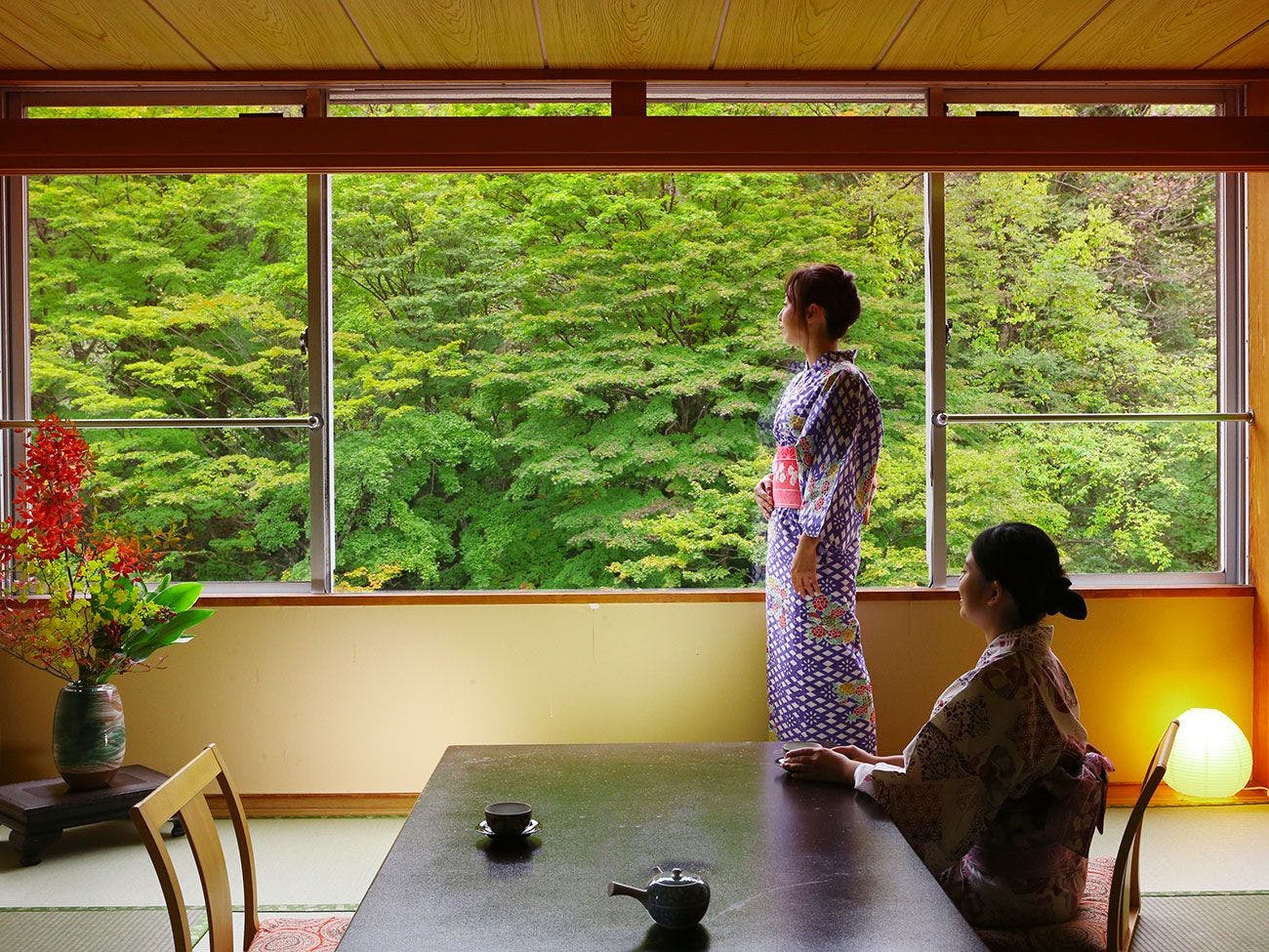 확장되는 사계절 풍경과 부드러운 온천의 혜택.