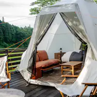 하쿠바무라 전관 내 반려견 동반 가능 처음인 반려견도 안심하고 이용할 수 있는, 애견과 애견인을 위한 글램핑 사이트. 북알프스를 바라보는 360도의 웅장한 사계절 경관을 즐기며, 마음껏 놀아보지 않으시겠어요? 애견과 애견인 여러분이 편안히 지내실 수 있도록, 기피하는 식재료 등 다양한 요청도 받아들이고 있습니다. 단골 고객들에게 사랑받는 자유로운 반려견과의 따뜻한 시간을 만끽해 보세요!