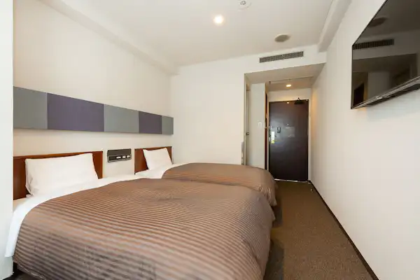 I stayed here during a concert at Fukuoka Sunpalace, and the location was convenient as it was close to the venue. Although I thought I knew in advance that the front desk was not on the first floor, I was momentarily confused upon arrival. It would be helpful if there were clearer signs near the entrance. Check-in was done via a machine, but with staff assistance, it went smoothly. Check-out was very simple—just dropping the key card into a box inside the elevator. Luggage storage is available through paid coin lockers, which seems to reduce staff requirements; if this helps keep accommodation costs low, it's fine by me. Amenities were provided on the front desk floor and included drinks, skincare products, and bath additives, which were nice touches. There don't seem to be single rooms available; however, staying in a double bed room alone allowed for a comfortable stay. The unit bath is compact and might feel cramped for larger individuals. There’s also a supermarket nearby that stays open late at night, so shopping wasn’t an issue either.