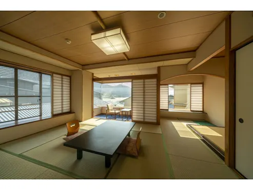 부두에서 도보 3분, 세계유산 이츠쿠시마 신사까지 도보 7분, 일본 3대 경치 아키의 미야지마를 만끽할 수 있는 거점으로 이용하실 수 있습니다. 최상층에 있는 대욕장에서는 세토 내해의 시간마다 아름다운 경치를 즐기실 수 있습니다. 스키야 양식의 차분한 객실. 저녁 식사는 히로시마 특산 굴과 장어를 사용한 일본식 가이세키 요리로 대접합니다.
