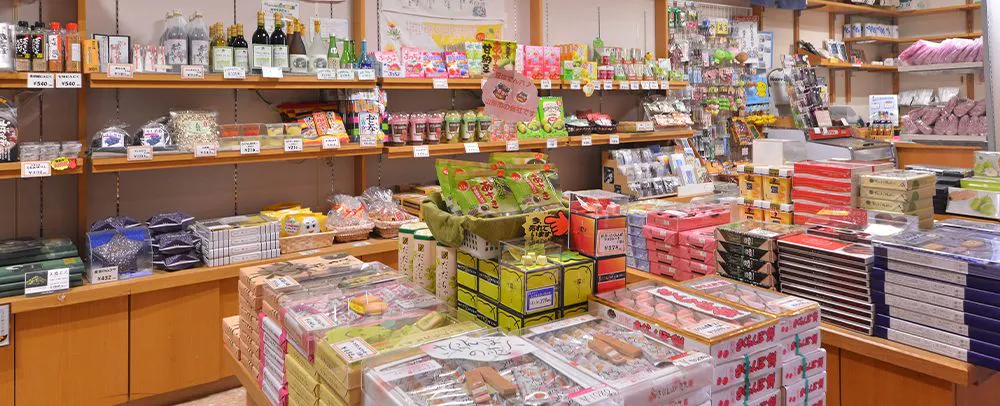 지역 한정 상품과 야마가타의 향토 요리인 이모니, 곤약구이 등 다양한 기념품을 준비하고 있습니다. 객실에 비치된 과자도 이곳에서 구매하실 수 있습니다. 기념품 발송 서비스도 제공합니다. 영업시간 7:30~21:00
