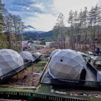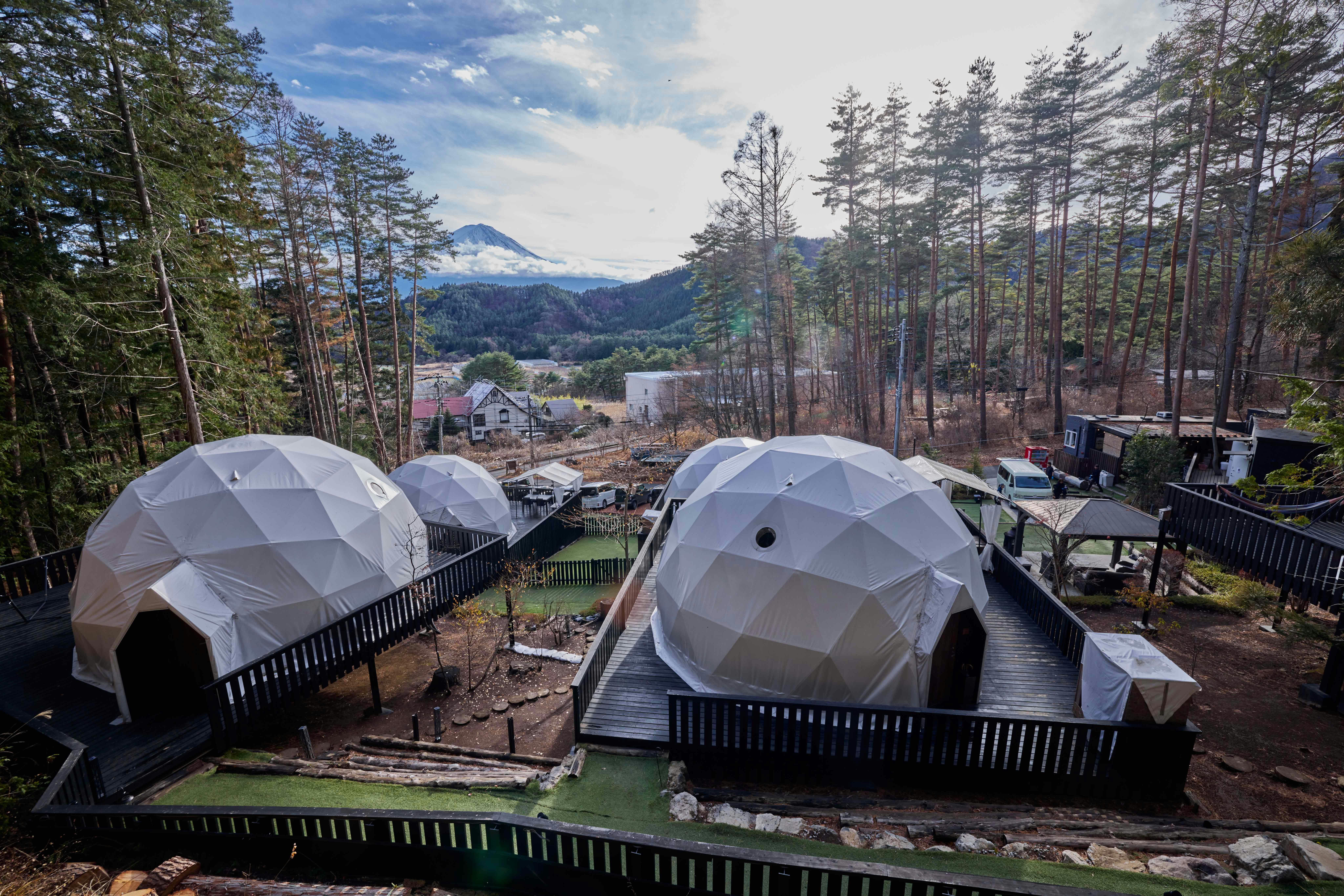 야마나시현/미나미쓰루군후지산 전망이 매력적인 숲속에 자리한 돔형 5채, 텐트형 4채로 구성된 글램핑장.