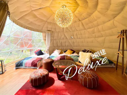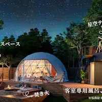 「나카츠가와 글램핑 모리노소라」는 나고야에서 차로 약 1시간 거리에 위치한 자연이 가득한 글램핑 시설입니다. 숲에 둘러싸인 조용한 공간에서 별빛과 벌레 소리를 느끼며 일상을 잊고 여유롭게 보낼 수 있습니다. 객실은 둥근 돔형 텐트로 냉난방이 완비된 쾌적한 환경을 제공합니다. 모든 객실에는 반노천탕이 딸려 있어 경치를 감상하며 목욕을 즐길 수 있습니다. 또한, 각 객실에는 클리어 돔 형태의 식사 공간이 마련되어 있어 비 오는 날에도 부담 없이 바비큐를 즐길 수 있는 배려가 되어 있습니다. 주변을 신경 쓰지 않고 가족이나 친구와 함께 느긋하게 시간을 보낼 수 있는 것이 매력입니다. 시설 내에는 발리 섬 리조트를 연상시키는 세련된 정원과, 밤이 되면 반짝이는 라이트 업이 매우 멋집니다. 라이트 업된 수영장도 있어 낮에는 리조트 기분을 만끽하고, 밤에는 환상적인 분위기에 젖을 수 있습니다. 모닥불을 둘러싸고 이야기를 나누거나, 밤에는 별빛을 올려다보며 릴랙스하는 등 이곳에서만 느낄 수 있는 시간이 가득합니다. 객실에서는 영화를 즐길 수도 있어 특별한 시간을 보낼 수 있습니다. 「나카츠가와 글램핑 모리노소라」에서 간편하게 럭셔리한 시간을 체험해 보지 않으시겠습니까?
