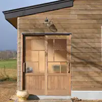 시가지에서 약간 떨어진 장소의 목초지에 따라 나무로 된 건물이 보이기 시작합니다.
