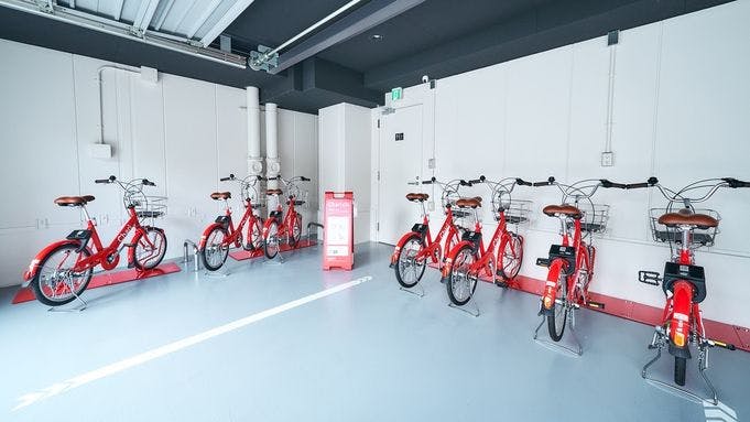 시설 내에는 공유 자전거 포트를 설치하여 도쿄 스카이트리, 아사쿠사 사원, 나카미세 상점가 등 주변의 인기 관광지에 쉽게 접근할 수 있습니다. 앱을 다운로드하기만 하면 간단히 이용 가능하며, 열쇠 개폐도 앱으로 관리되어 분실 걱정 없이 안심하고 이용할 수 있습니다.