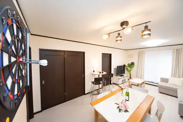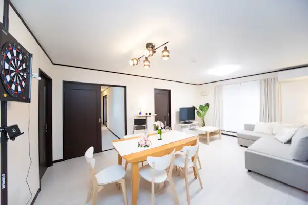 아와지시 쿠루마에 위치한 넓은 3LDK 독채 숙소입니다! 이 시설은 큰 단독주택의 2층 부분을 통째로 대여할 수 있는 타입입니다. (무인) 비대면형 숙소로, 안전하고 쾌적한 숙박 경험을 제공합니다. 시설의 넓이는 112㎡입니다. 입구, 욕실, 화장실 등은 모두 독립형(공유가 아닙니다)입니다. 독립형이기 때문에 부담 없이 편안하게 휴식을 취하실 수 있습니다. 구조는 3LDK + 데스크 공간이 있습니다. 거실에는 큰 소파베드(2명 숙박 가능)가 있습니다. 최대 15명까지 숙박 가능합니다. 더블베드 4대 소파베드 1대(대형으로 2명 숙박 가능) 세미더블베드 2대 이불 3세트 접이식 침대 1대