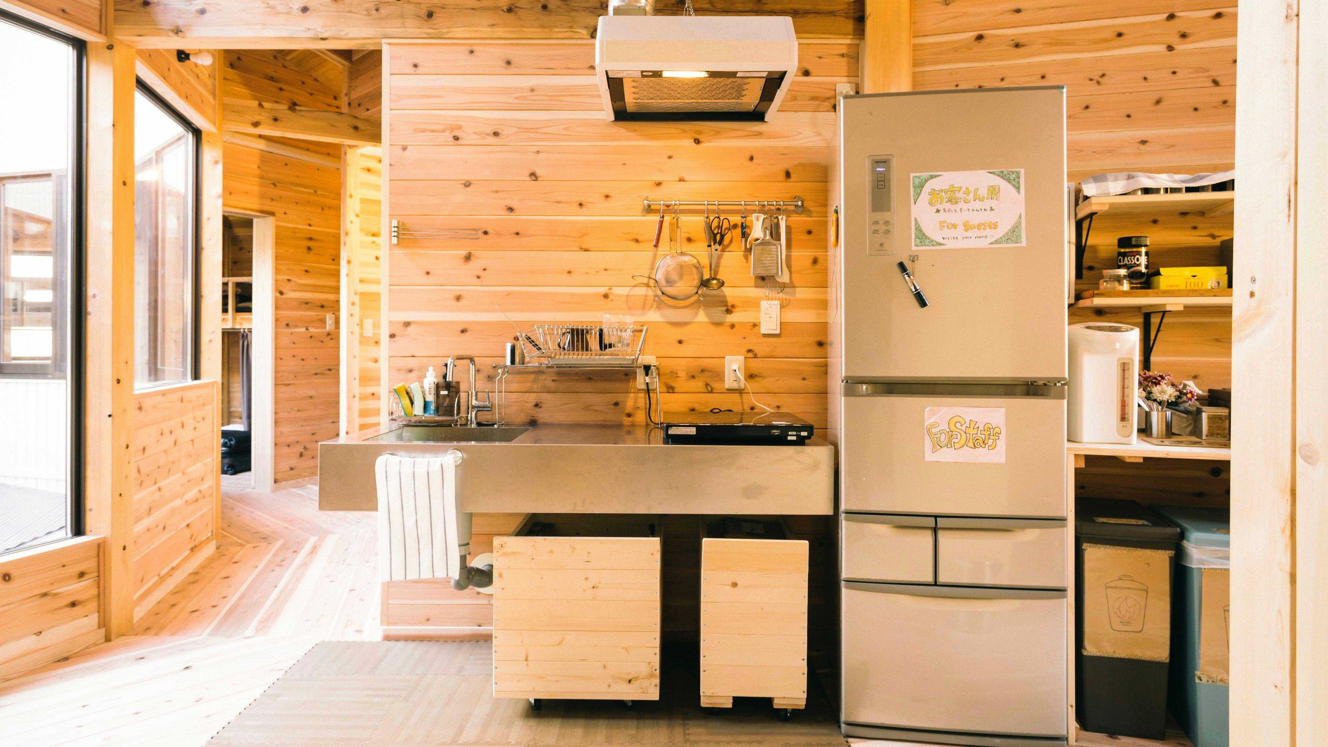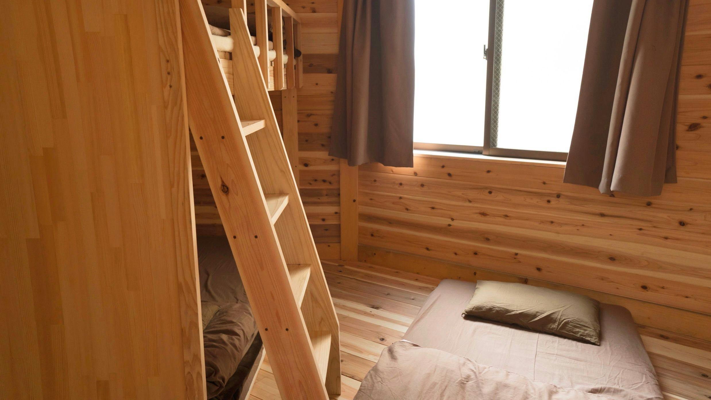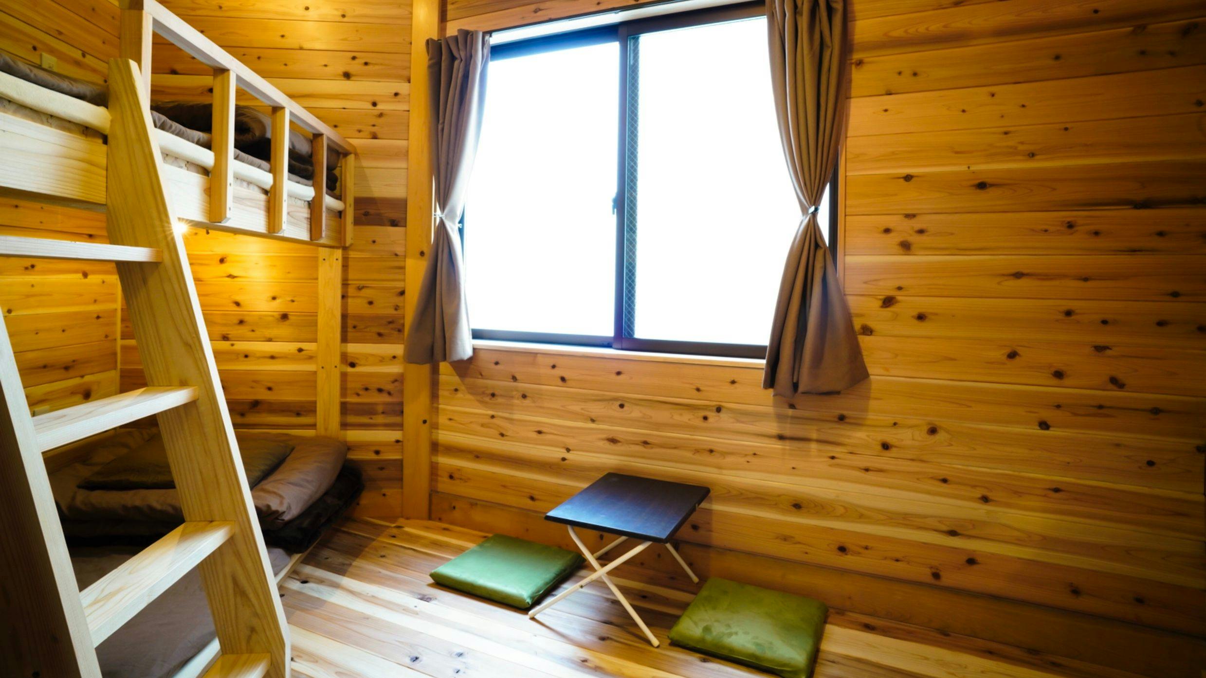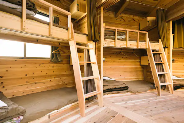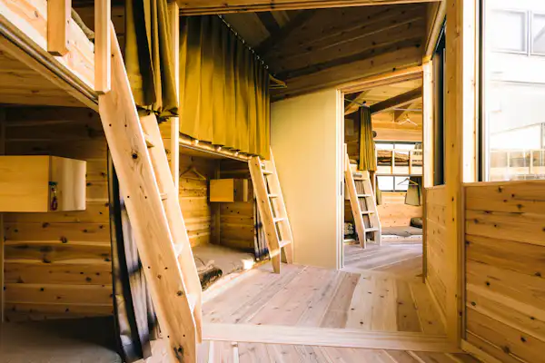 | 기타 | 지역 빵집의 빵(유료), 무료 음료, 목욕 타월(대여 100엔), 칫솔(50엔). 무첨가 샴푸 및 린스, 액체 비누, 헤어드라이어 완비. 도보 10분 거리에 대중목욕탕 있음(할인권 제공). 도미토리: 각 침대에 콘센트, 조명, 화장 거울. 객실 내에 잠금장치가 있는 로커, 에어컨. |