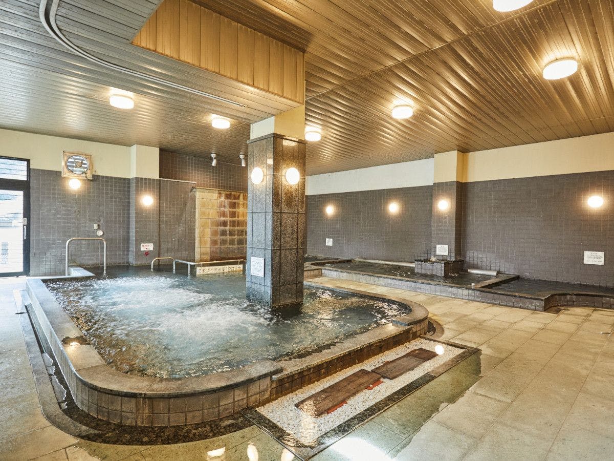 온천에 몸을 맡기고 여행의 피로를 푸는 시간. 고온 사우나도 이용 가능한 대욕장은 아침 6시부터 여러분을 맞이합니다.