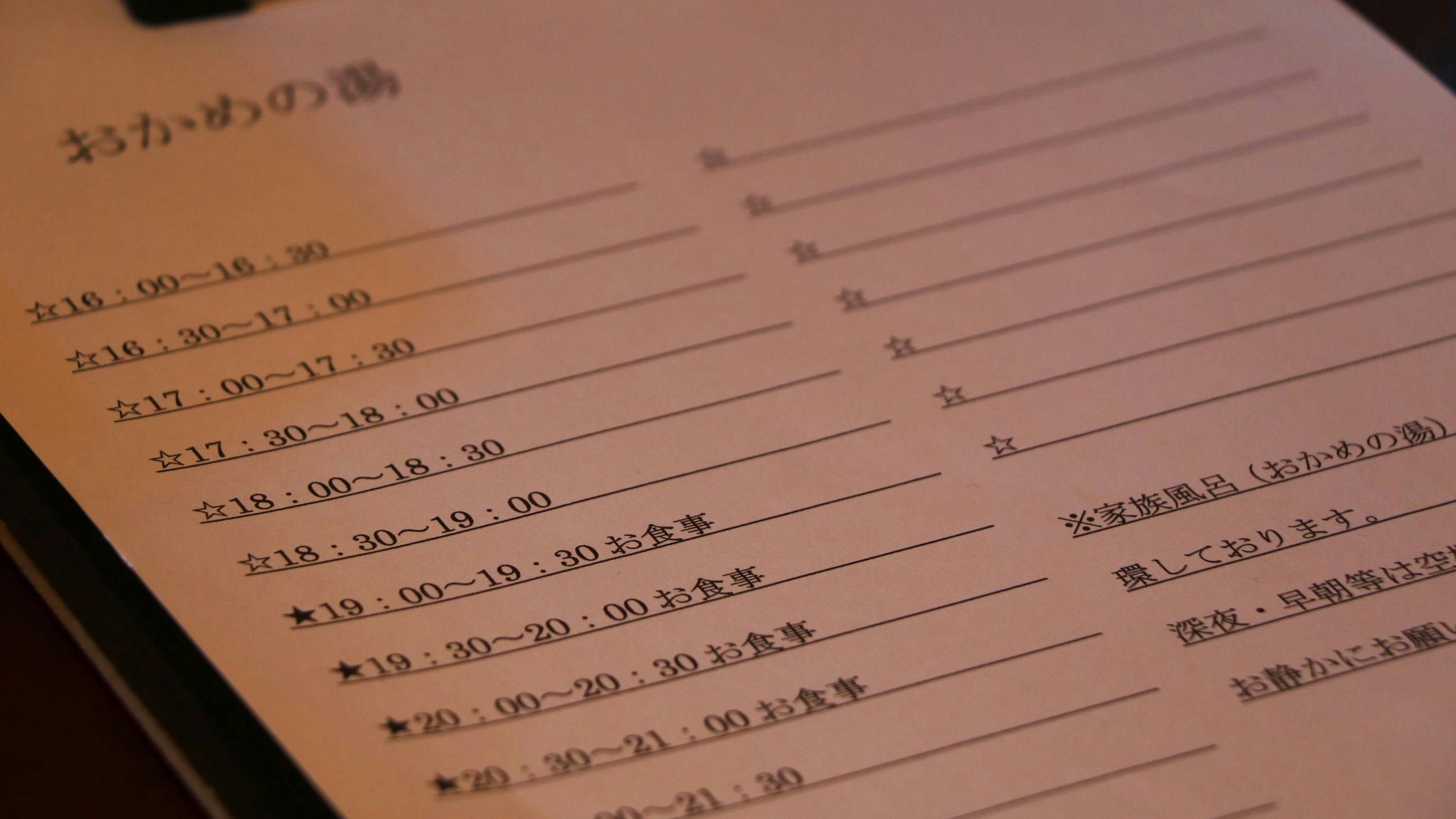 ・영업 시간: 00:00~24:00 ・온천: 없음 ・온천수 흐름: 없음 ・탁한 온천: 없음 오카메노유는 24시간 이용 가능 효토코노유(약초탕) 이용 시간 16:00~24:00까지