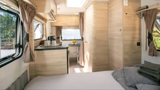 ‘아마미 온천 야마토 하나하나 비치 리조트’의 숙소 ‘하마부치도마리’는 해변에서 머무는 절경 글램핑입니다. 환상적인 선셋과 압도적인 별빛 하늘을 만끽하세요. 트레일러 하우스와 프라이빗 데크에서 아마미의 자연을 온몸으로 느껴보세요. 이곳에서 보낸 시간은 잊지 못할 추억이 됩니다. 지하 1,600m에서 솟아나는 천연 온천, 계곡을 모티브로 한 야외 수영장, 아웃도어 사우나, 아마미 미식도 즐기실 수 있습니다.